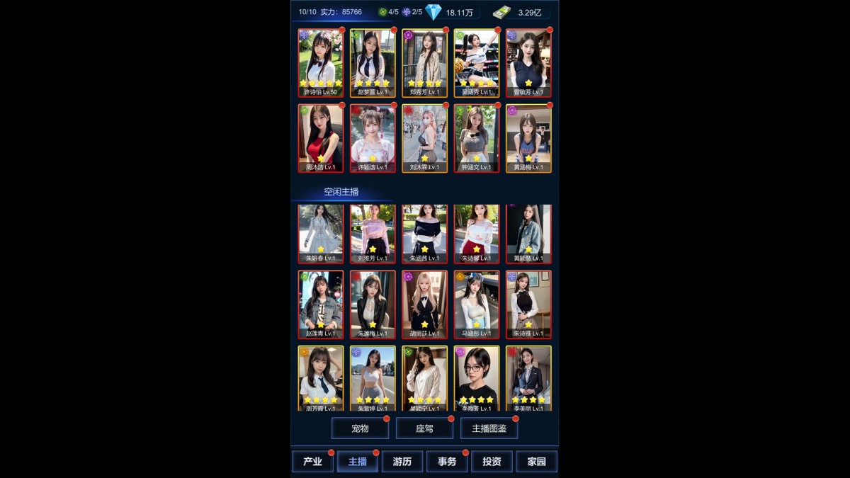 打工人突然被告知要继承巨额遗产,人生要有梦想,你决定进军直播行业,疯狂买买买,招聘百位美女主播!这是一款放置模拟经营类型单机游戏,开直播公司,招聘美女主播,疯狂买买买,体验土豪人生的乐趣,最多可同时上阵10名主播,还可以挑战关卡获取更多收益,最终把直播业务扩展到全世界,成为世界五百强企业。