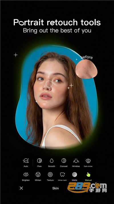 - 自然轻量美颜: 精致自然立体细节,展现少女感,给照片注入自然轻松的美颜效果。
