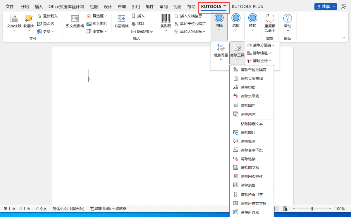 Kutools for Word是一款强大的Microsoft Office Word插件工具箱,旨在提高您在Word中的办公效率。它整合了上百种实用的功能,可以有效地解放您在办公中的耗时操作,节省时间,提高工作效率。无论是删除空白行、删除图片、还是删除表格空白行等,Kutools for Word都能轻松应对,让您摆脱繁琐的文档处理工作。