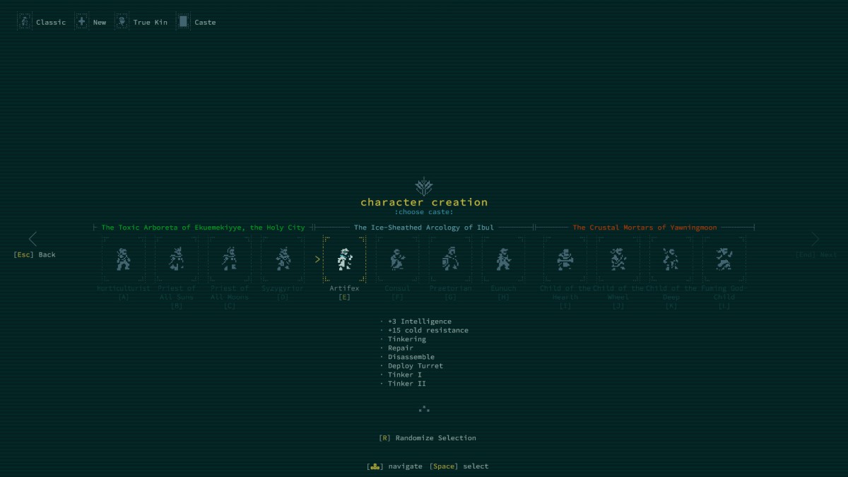 《卡德洞窟》是一部科学幻想风格的史诗 Roguelike 游戏,世界深受复古未来风 (retrofuturism),深度模拟,以及不计其数的带知觉植物的影响。栖息定居于一个奇异的世界,凿开蕴藏千年文明文化的地壳。请自行作出判断:该地是已经濒临死寂,亦或是即将迎来新生?你扮演着谁?扮演来自卡德丛林以及来自覆盖盐精的沙丘的变种人原住民,亦或是,扮演来自为数不多的仍存在的生态庇护所的纯正后裔——圣城 Ekyemekiyye 的剧毒蔓生区;Ibul 的冰封生态建筑群;Yawningmoon 的灰泥地表。
