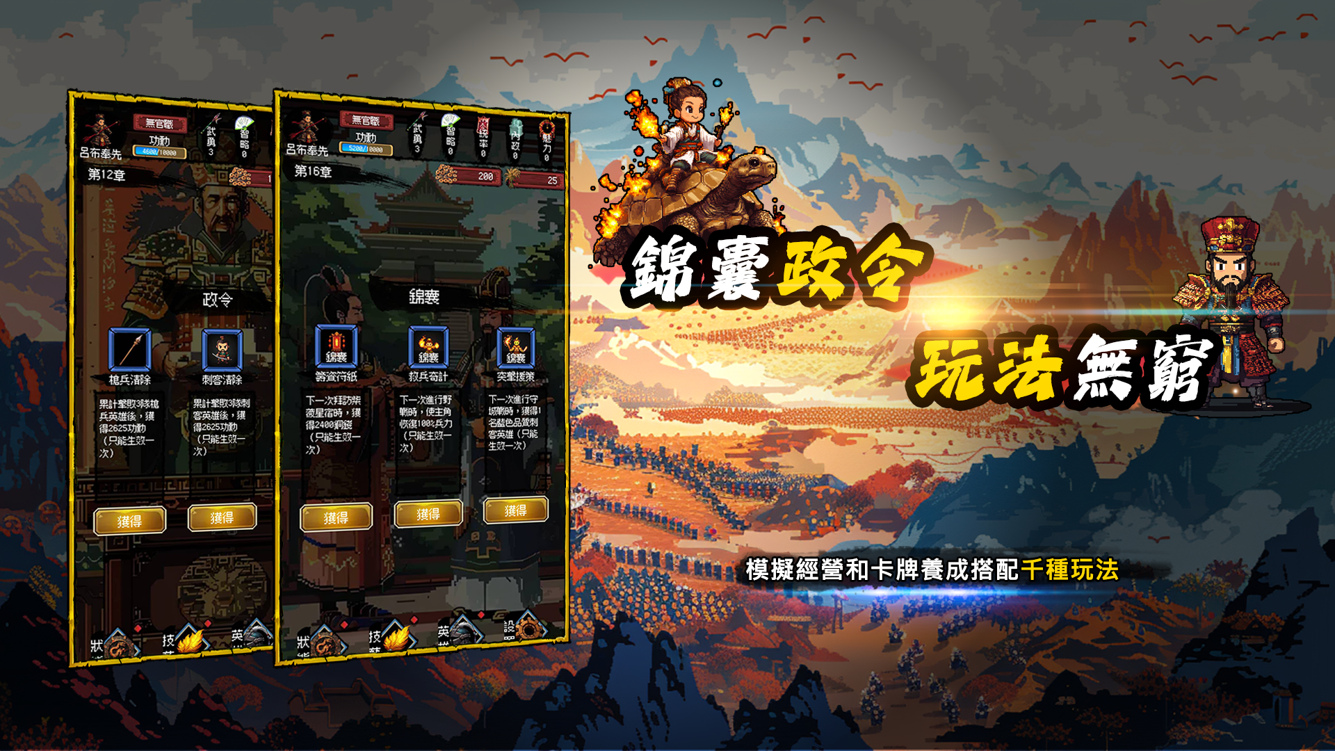三国之英雄宿命游戏是一款休闲游戏,以三国为背景,是一款融合rougelite元素的角色扮演游戏,您不仅可扮演吕布,还能化身郭嘉、赵云等名将,从他们的少年英姿起步,亲历其一生跌宕,亲手改写那些令英雄扼腕的历史节点。