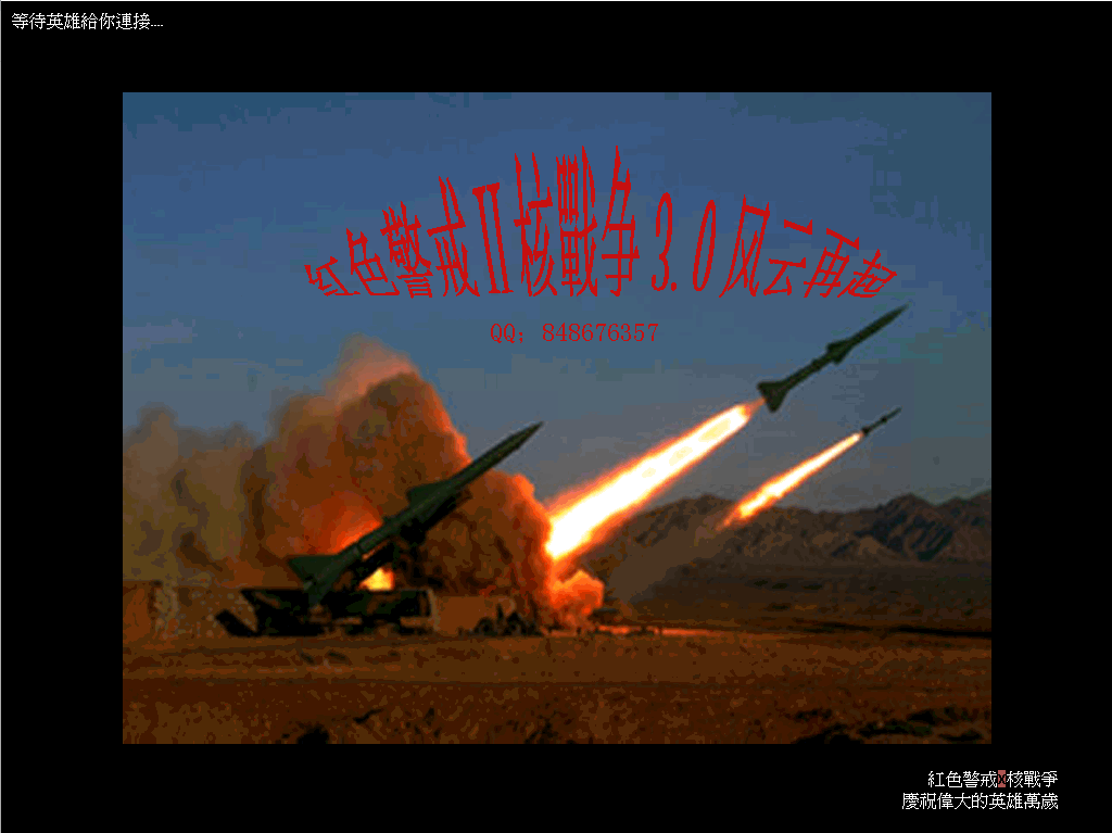 这个是红色警戒2的改编版本,各个国家加上核武器,实力大大加强,尤其是中国,辽宁号、东风41、神剑2000巡航导弹等等新式装备出场十几种。大家都想期望自己的国家变强。其他国家还有:俄罗斯、印度、日本、朝鲜、德国、以色列、阿拉伯、美国。