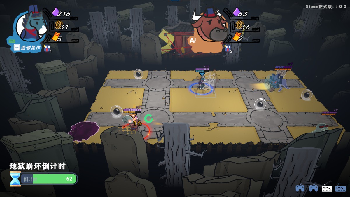 “地狱里的牛马”是一款合作战斗rogue游戏,支持最多两名玩家,分别控制牛头马面,在地狱里惩罚恶鬼。但要小心这些不同能力的恶鬼,他们可没那么好对付。
