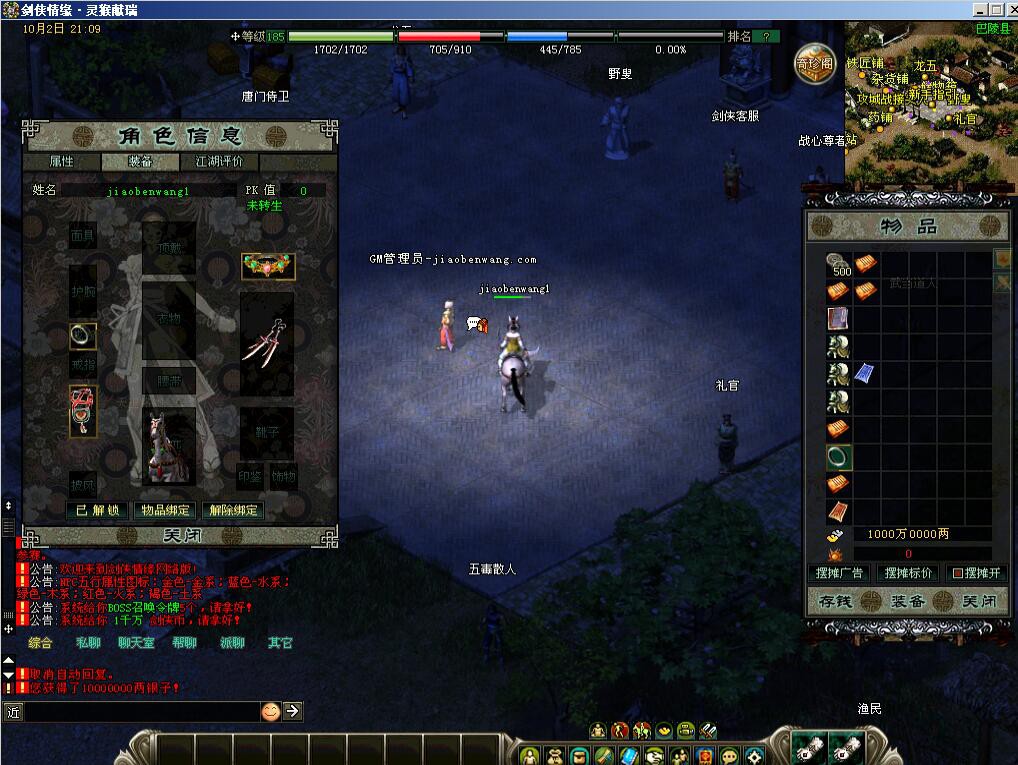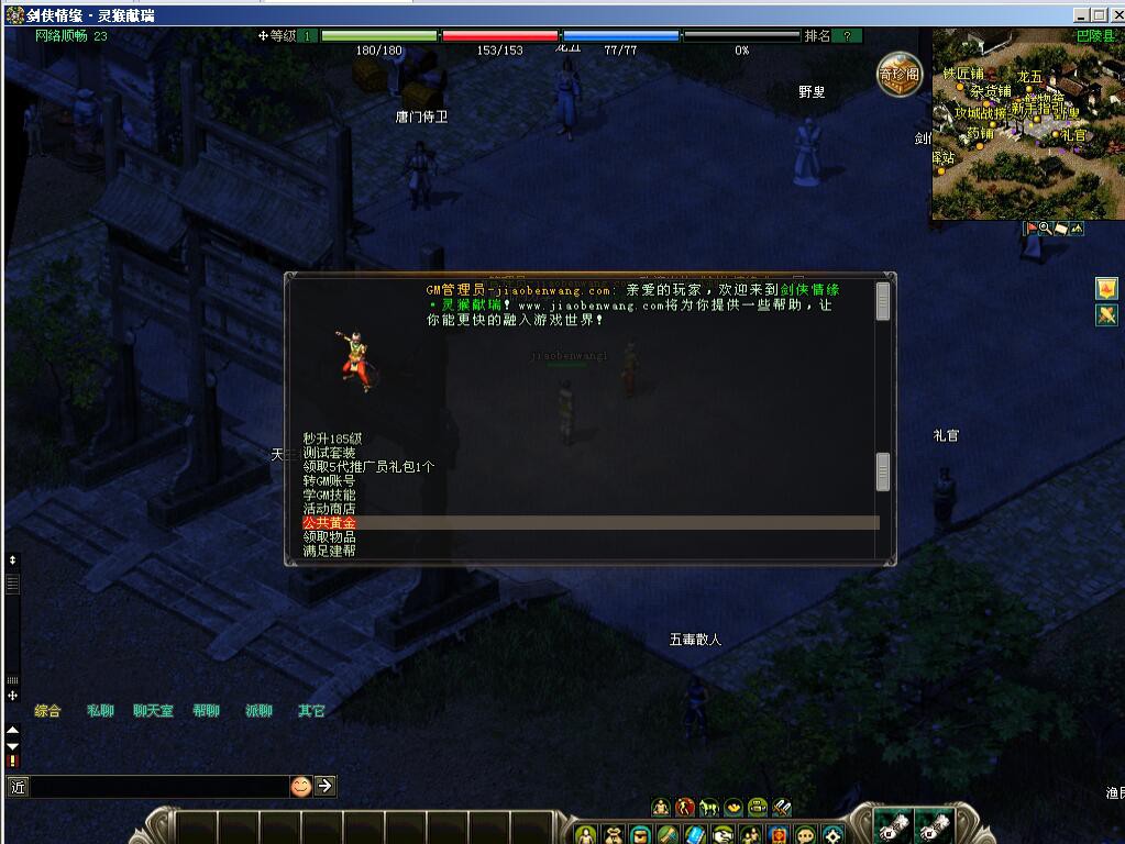 下载好服务端后一定要看清楚下面的注意事项。XP系统里桌面启动1删除,然后进入D盘,设置文件夹选项为 隐藏文件夹可见。里面有启动的2个文件, 逐个点开就可以了。其他按照视频架设就好了。这步切记要做,否则服务器端将没有启动。完美进游戏,各种功能完美运行,研究下应该可以开外网。里面有个注册网关,在VM虚拟机不用设置任何映射,网关 放服务器桌面设置 好转发,外网可以注册,就是不能进游戏,请各位大神研究下。唯一美中不足的就是恶狼谷不能使用乾坤弹,不知道怎么修复。GM账号就是教程那个,其他注册号不能刷GM玉玺,其他都可以。请自行查毒!